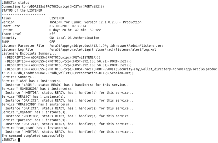 (리스너가 잘 사용되고 있음 srvctl status listener의 명령어로도 리스너 동작중인지 확인할 수 있음)
