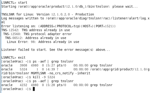 TNS-12542: TNS:address already in use TNS-12560: TNS:protocol adapter error TNS-00512: address already in use Linux Error: 98: Address already in use |