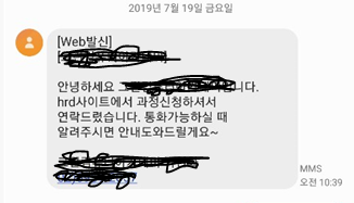 신청하고 난 후 신청이 되긴 한건가? 기웃기웃 거리고 있는데 문자가 왔습니다.