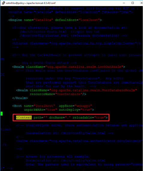 <Host name="localhost" appBase="webapps" unpackWARs="true" autoDeploy="true" > <Context path="" docBase="." reloadable="true"></context> |