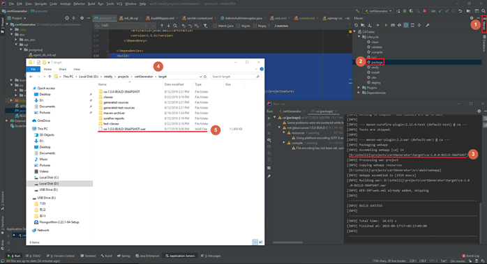 maven -> package 하면 3번과 같이 pakage된 .war 파일의 위치를 알려준다. 알려준 위치로 이동하면 war 파일이 있는 것을 확인할 수 있다.