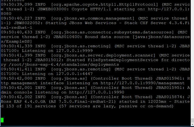 실행 중에 저렇게 멈추는데 jboss가 실행된 상태입니다.