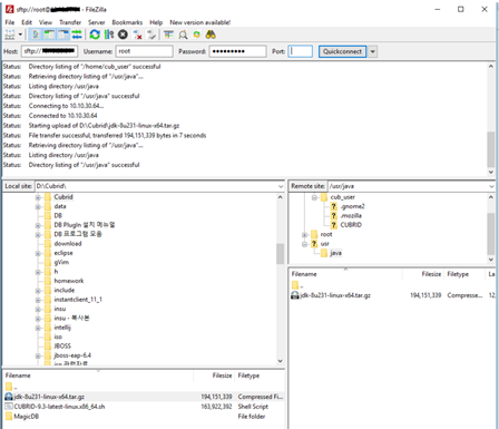 2) ftp 프로그램을 이용해서 jboss zip 파일을 옮겨줍니다.