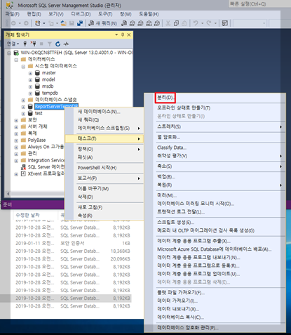 MSSQL DATA 폴더 변경