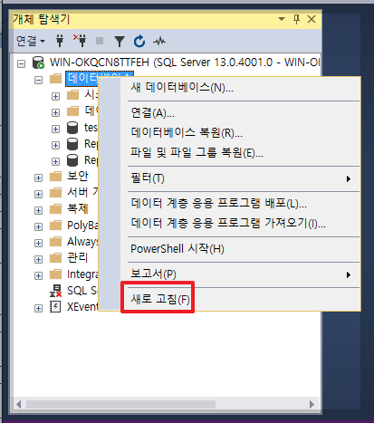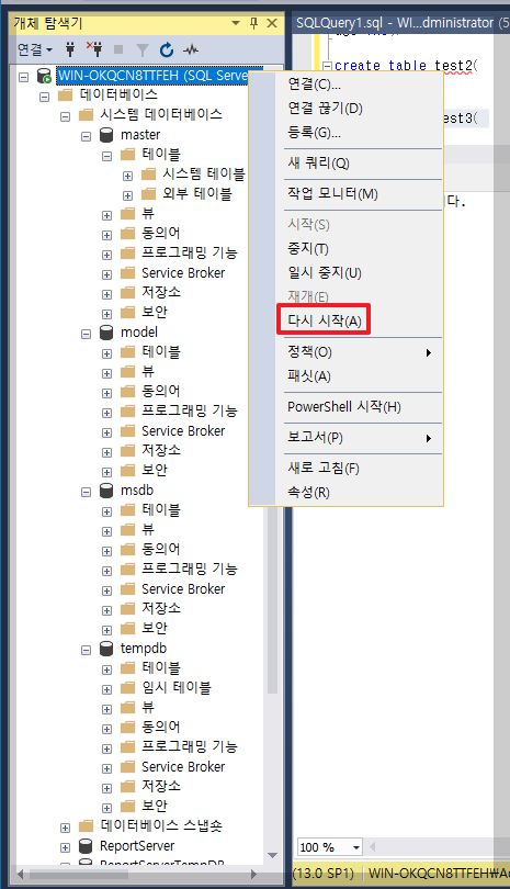 서버 재시작 후 ssms 접속