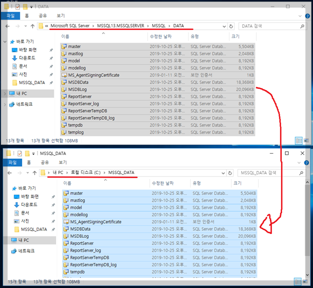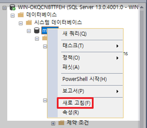 또한 시스템 데이터베이스를 옮기면 구동 시 많은 문제가 발생하기 때문에, 옮겼던 것을 제자리로 다시 옮기도록 한다.