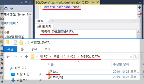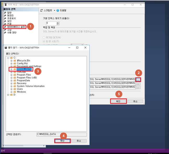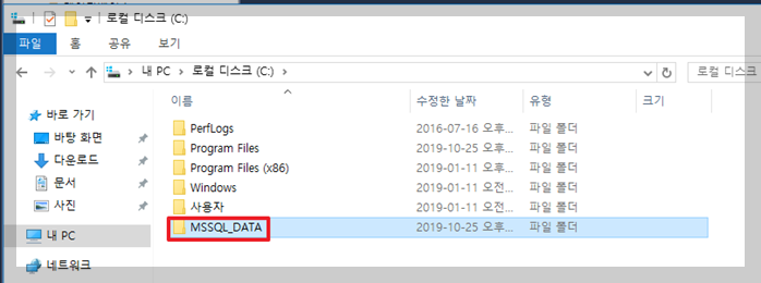 C드라이브에 MSSQL_DATA라는 폴더를 생성해줌.