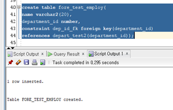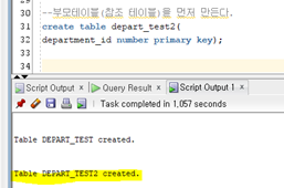 -- 사원 테이블 생성 create table employees( department_id number(6) primary key, emp_name varchar2(80)); --부서 테이블 생성 create table departments( department_id number(6) primary key, department_name varchar2(80)); |