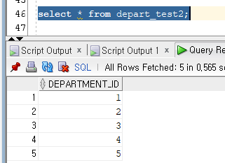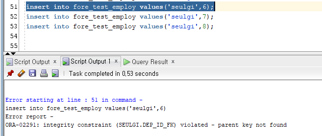 참조하고 있는 depart_test2테이블에 있는 1,2,3,4,5인 경우에는 잘 입력이 된다.