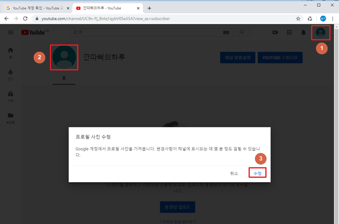 4) 유튜브에 채널 아이콘 적용하기
