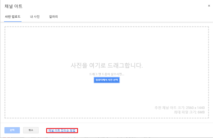 채널 아트는 내 채널에 들어오면 상단 위에 넓게 보이는 화면입니다.