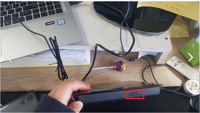 2. 버튼 눌러서 연 후 cd를 삽입합니다.