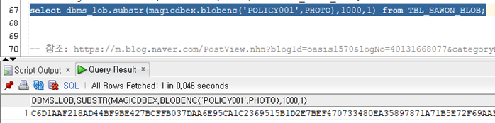 BLOB과 같은 LOB 타입은 일반적인 select문으로는 볼 수 없기 때문에 오라클의 시스템함수를 사용하여 볼 수 있다.