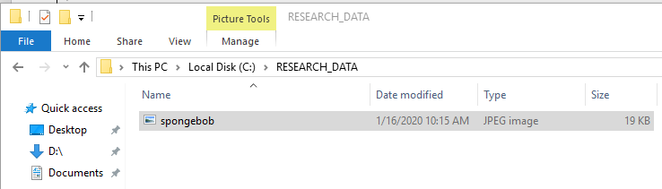 C:\RESEARCH_DATA 밑에 저장할 BLOB 데이터인 spongebob.jpg를 저장해준다.