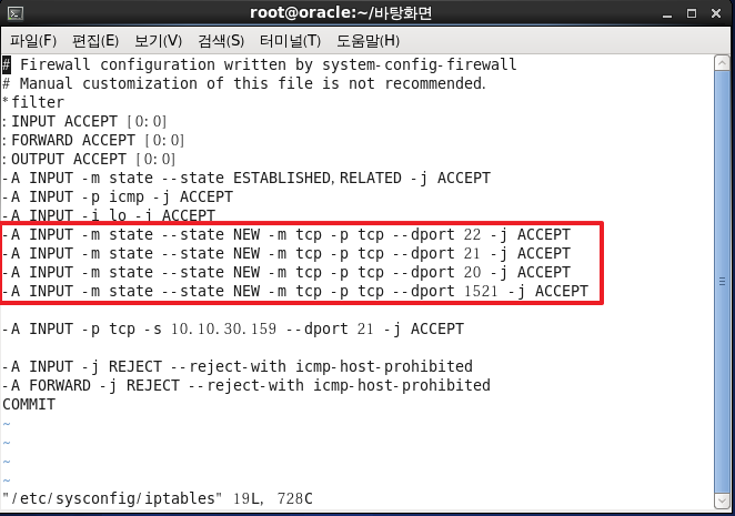 하.. centos6에서 vi /etc/sysconfig/iptables에 아래와 같이 추가해주고