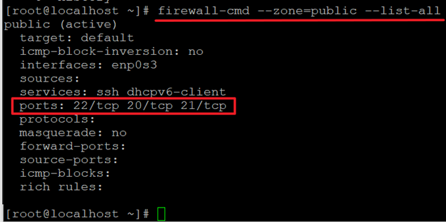firewall-cmd –zone=public –permanent –add-port=22/tcp --22번 포트 방화벽 해제