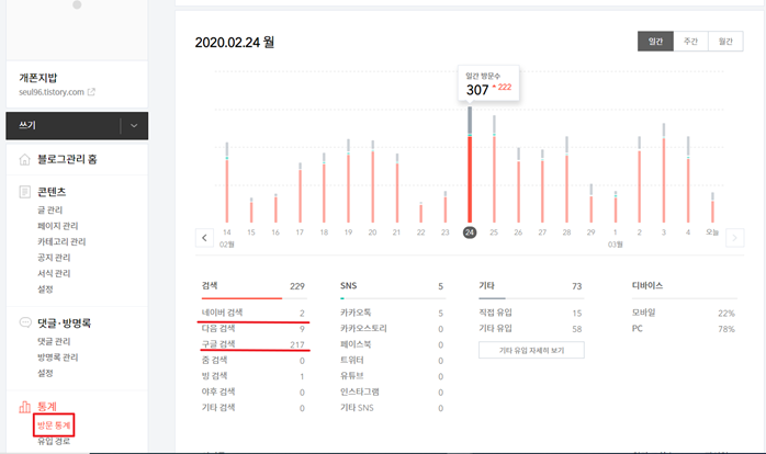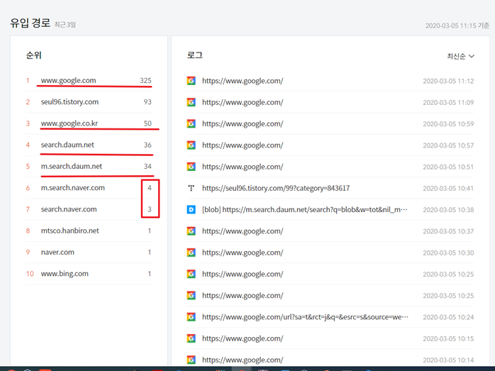 아무래도 한국사람들은 구글검색보다는 네이버나 다음 검색을 더 많이 사용합니다. 하지만 네이버는 티스토리 블로그가 잘 나오지 않습니다. 아래의 네이버 유입을 높이는 방법입니다.