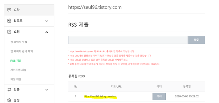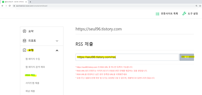 정상적으로 rss가 등록되었습니다.