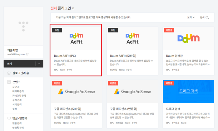 애드센스 이외의 광고인 AdFit 사용하기