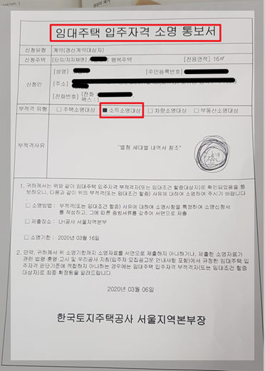 우편을 받았습니다. 얼마전에 행복주택 재계약을 해서 재계약 대상자로 잘 되었다는 우편 서류인지 알았는데 뜯어보니 소명 통보서 이더군요.