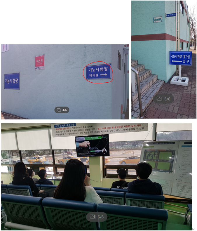 기능 시험장으로 안으로 들어가시면 기능 시험장 대기실이 있는데 들어가기전에 응시표를 내시면 됩니다. 아마 응시표 낸 순서대로 순서가 정해지는 것 같습니다.