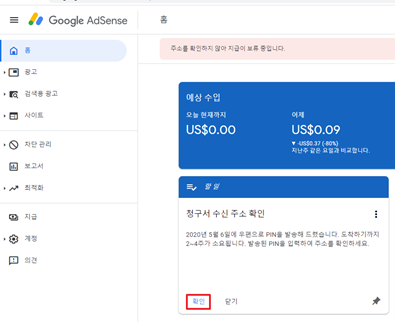 청구서 수신 주소 확인을 해달라고 뜹니다. 확인을 눌러주세요.