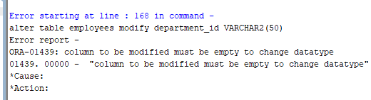 그러면 ORA-01439: column to be modified must be empty to change datatype 01439. 00000 - "column to be modified must be empty to change datatype"