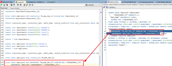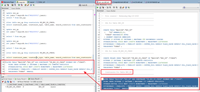 Oracle SQL Developer에서 제공해주는 테이블 SQL문과 DDL Save를 이용하여 제약조건을 다시 쉽게 추가하였다.