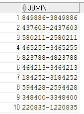 1단계 : 주민번호 앞 6자리 출력해보기 (DBMS_RANDOM.VALUE라는 내장함수 이용)