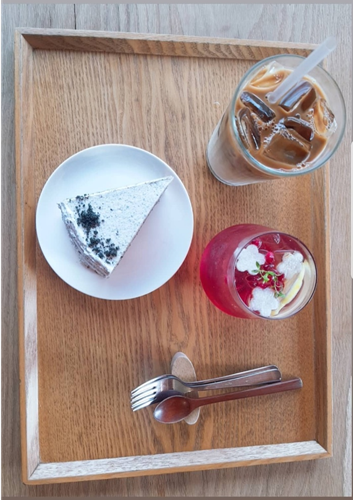 아 여기는 제가 갔던 카페 중에 경치 예쁜 곳으로 TOP 3안에 드는 것 같아요. 웨이팅 있을 수도 있구요. 장사가 잘 되서 그런지 2호점을 건축하시는 중 같았어요(제 생각ㅋㅋㅋ) 커피 종류는 그냥 일반 커피집 같았구요. 오미자는 맛있었습니다!. 그리고 정말 예쁘게 나와요 가격은 좀 있었어요 칠천원~만원. 흑임자 케익은 보통 카페랑 비슷하다고 보면 되요 괜찮았습니다 ㅎㅎ