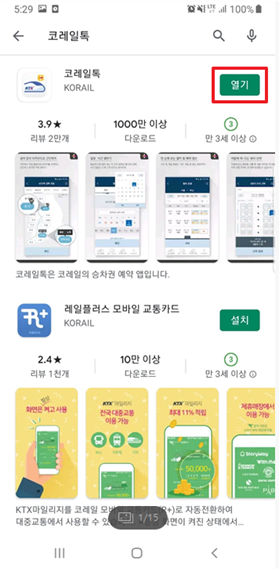 1) 코레일톡 설치 및 열기