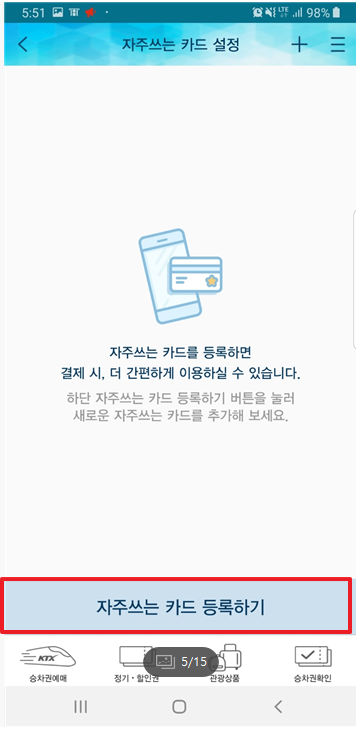 5) 자주쓰는 카드 등록하기 선택