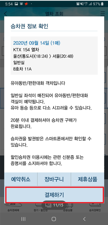 코레일톡을 이용하여 KTX 예매 방법