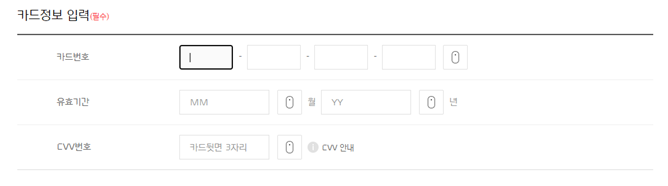 -> 카드번호, 유효기간, cvv 입력