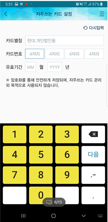 6) 카드별칭 카드번호 유효기간 입력