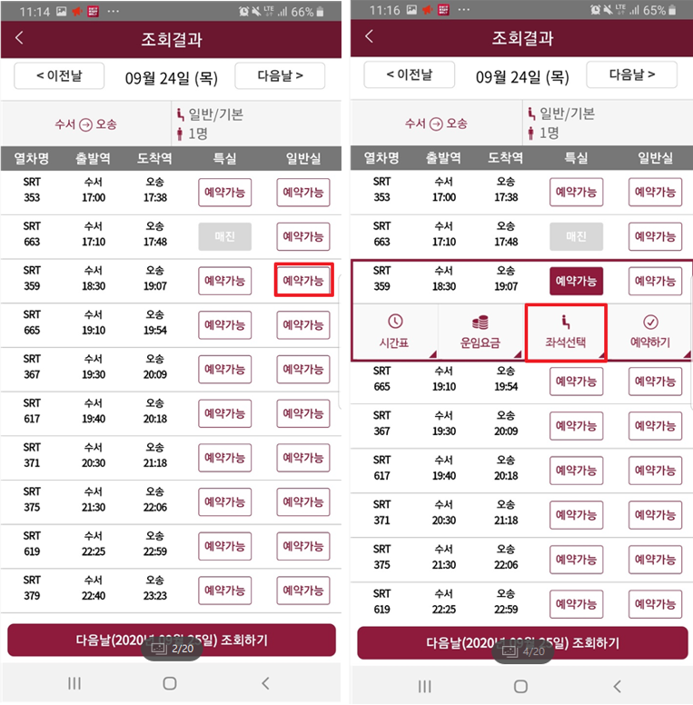 1) 승차 하고싶은 열차 선택