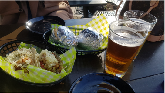 - 음식: 올라타코(부리또-pork, 퀘사디아 - 쉬림프, 수제맥주 2잔) 오설록(녹차아이스크림, 녹차케이크)