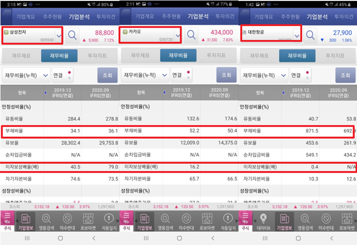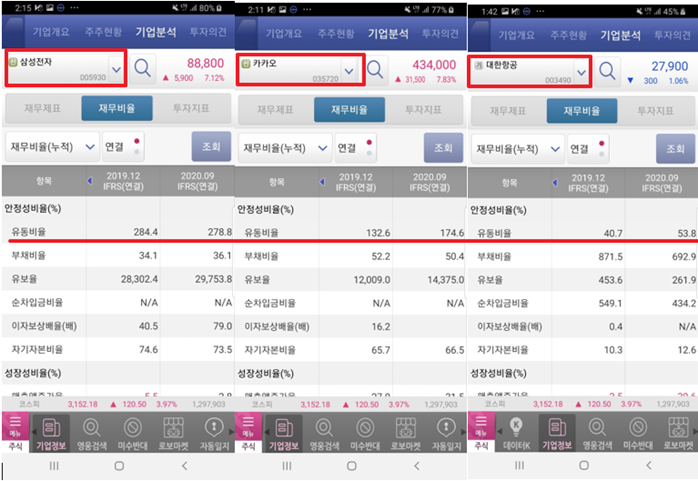 와 왜 사람들이 삼성은 안 망할 거라고 이야기하는 줄 알겠네요…. 유동비율도 200%이상이네요. 그리고 대한항공 너 괜찮은거지…? 유동비율은 적은데 부채비율은 상상을 초월하잖아 ㅇ0ㅇ oh no!!!!! is it okay my money..? if I knew “재무비율”, I wouldn’t mistake like that. holly~~~ 그냥 코로나가 회복되기 까지 부도만 안 나길 기도할게요…