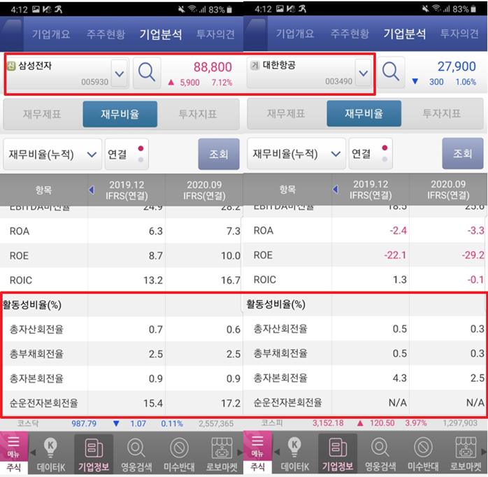 영웅문S로 재무비율 보는 법