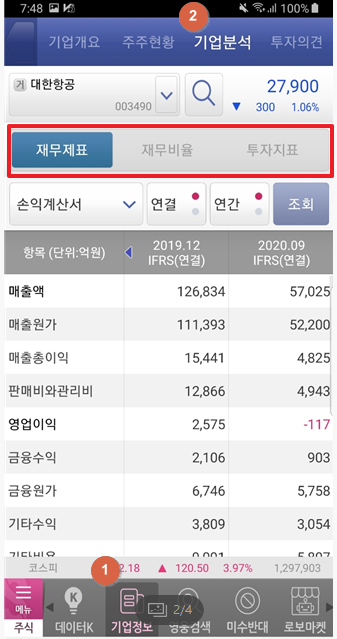 재무제표, 재무비율, 투자지표 등 자세한 정보를 볼 수 있다.