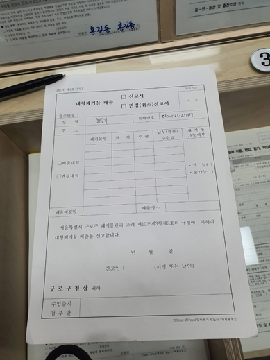 2. 동사무소에 가서 대형폐기물 배출서를 작성한다.
