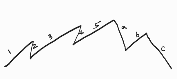 상승할 때에는 5개의 파동을, 하락할 때에는 3개의 파동을 그리며 순환한다는 것이 파동분석이론입니다.