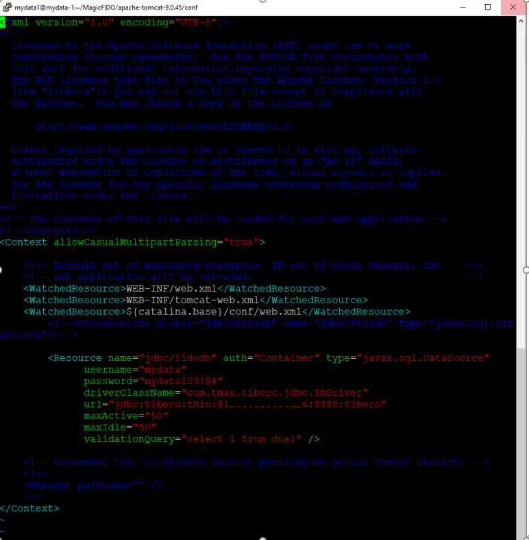 <Resource name="jdbc/fidodb" auth="Container" type="javax.sql.DataSource"