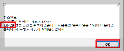 조금만 기다리면 청소완료 문구와 함께 1.54GB 만큼 공간을 확보하였다고 뜹니다!