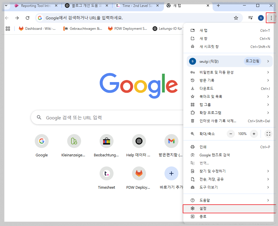 크롬 브라우저를 여시고 저 …(더보기)를 눌러주세요
