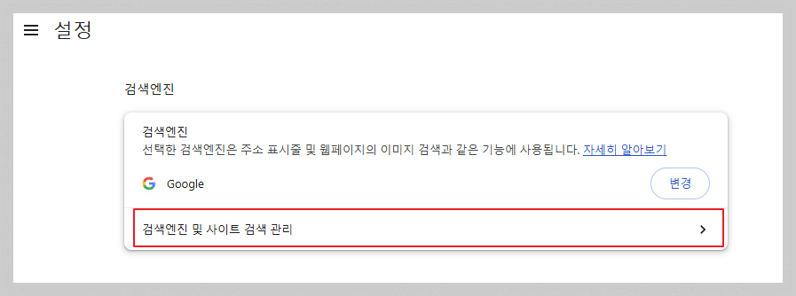 1. 설정 -> 검색엔진(검색엔진 관리) -> Google 선택