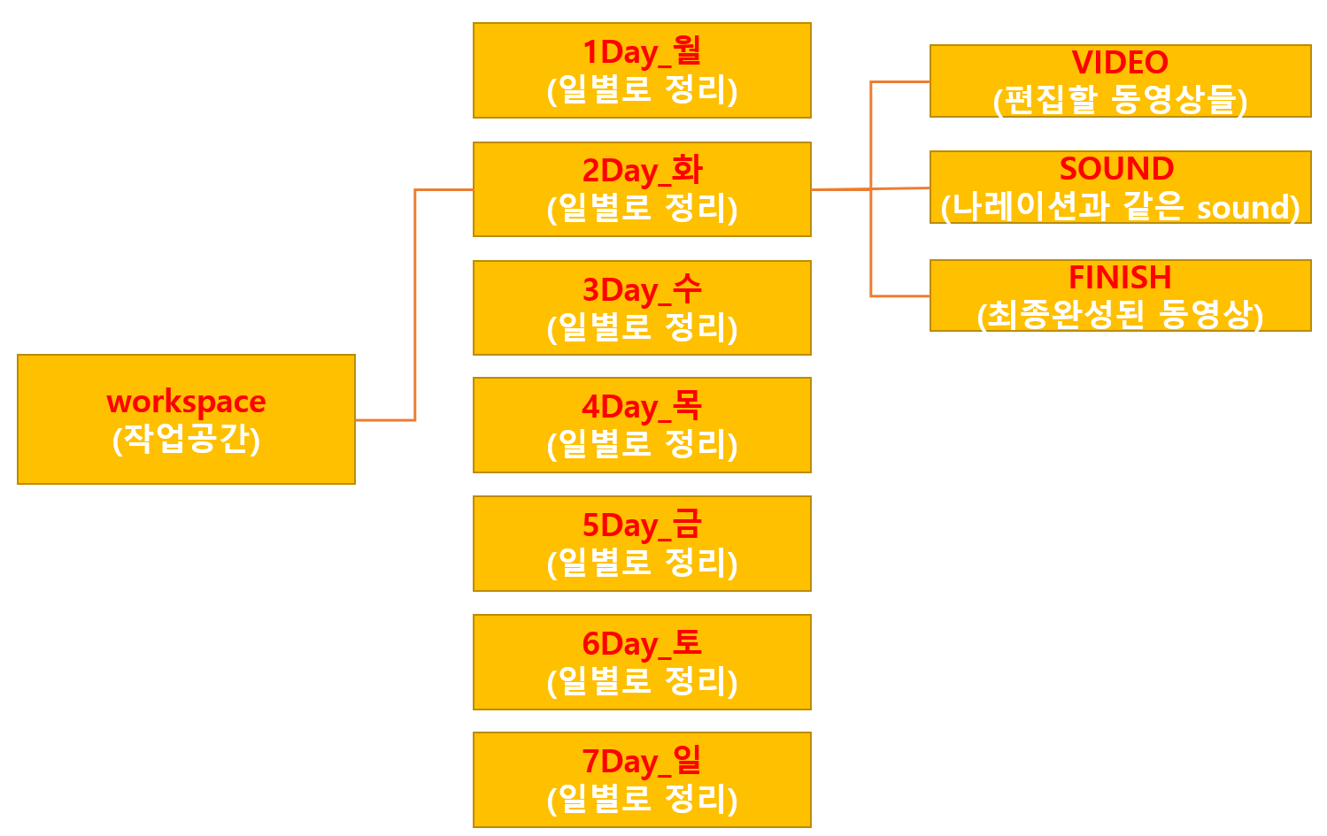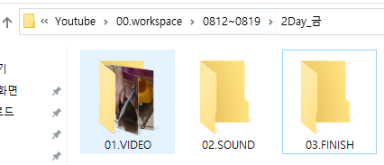 day 폴더 안에 video, sound, finish 폴더 별로 다시 정리합니다.