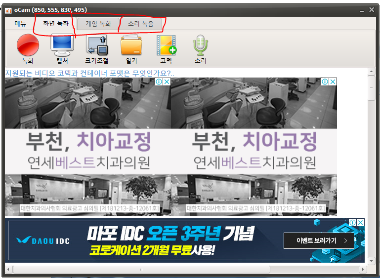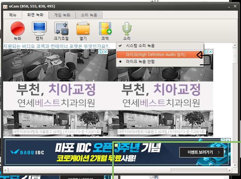오캠으로 화면 녹화와 동시에 녹음하려면?