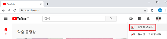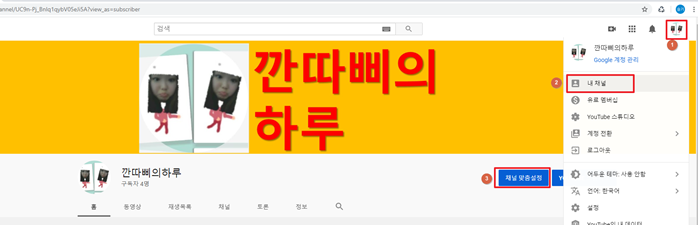 구독을 선택하면 자동적으로 내 채널이 나오고