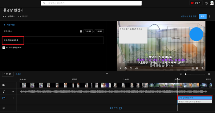 동영상의 최종 화면 부분에 <구독> 버튼과 추천 동영상 추가